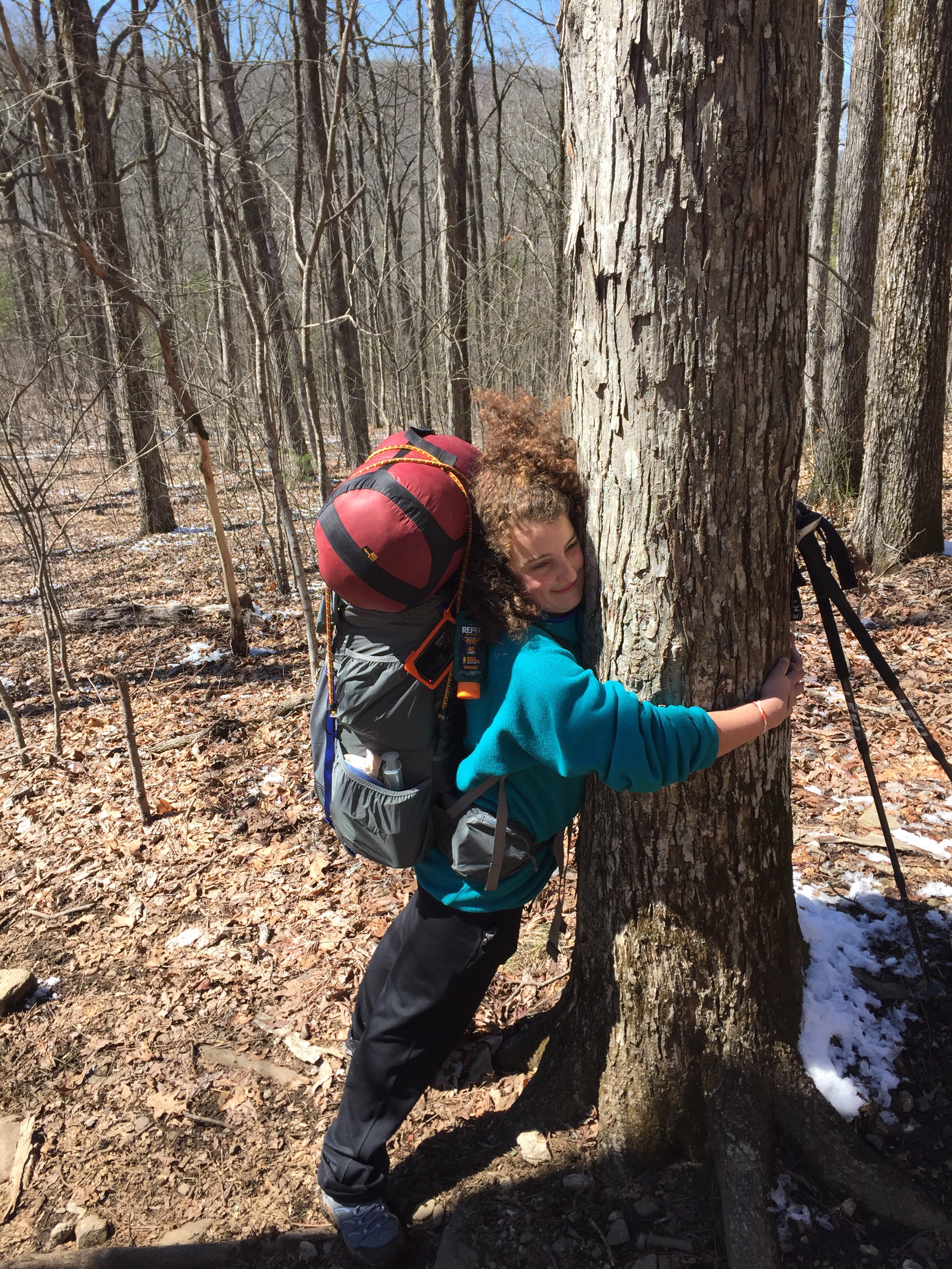 And so we trek on, spending our first night on a quaint little camp site with some cool views. We kept walking past the first shelter because it was too early and cold. So now we got this place! Even though now I’m way tired. Thank god for trees right? They’ll almost always support you.