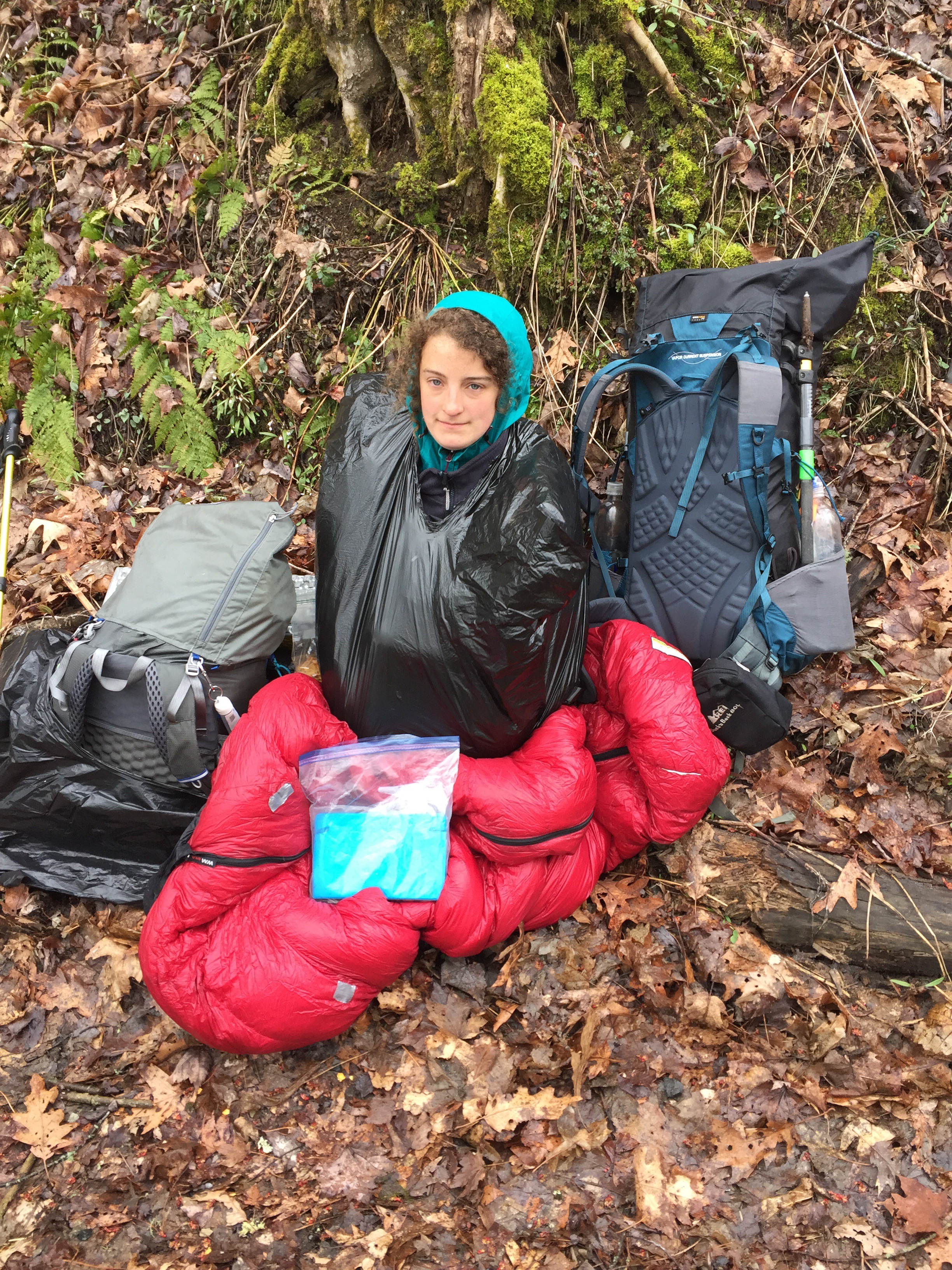 That’s how I ended up in the trash bag on the side of the road eating crushed cheeze its. I put on all my warm clothes, but then we had the fun idea of wrapping me in a trash bag (which is warm AND fabulous looking) so I took the opportunity to look fabulous.