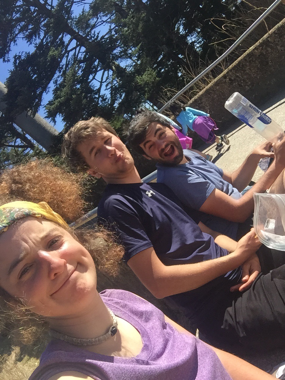The entire morning was foggy and cold and gross. Maybe like, 45 degrees out. I don’t know if you’ve ever broken down a tent in these conditions, but let me tell you firsthand it is horrible. Your hands freeze. Everything is wet. You can’t move fast. You put the wet things into your pack. You eat breakfast on a damp bench. Your friends are still cracking jokes and having fun, though, so you smile as you hunch within your rain jacket. You’re still happy to be out here, and you wait patiently and excitedly for the feeling to re-enter your fingers.