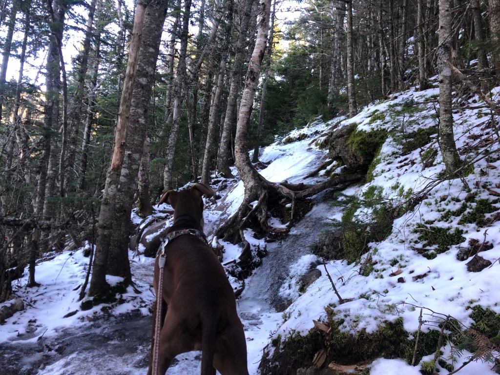 Ok, I’m talking about my First Trail Covered In Ice And Not Just Snow. You know, like, in the summer the water just runs over the trail in some parts, pooling maybe, trickling over the large expanses of rock once you’re above tree line? But then in the winter, all that water freezes on top of itself until its a thick layer of unrelenting slippery.
