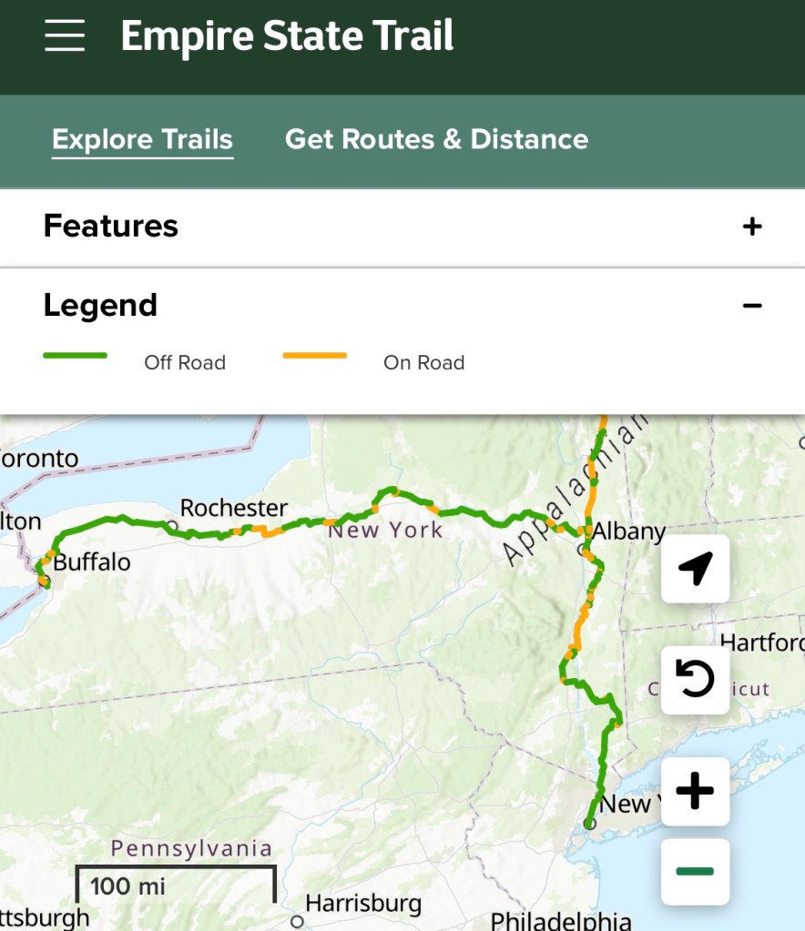 The Empire State Trail is 750 miles of connected paths/trails/roads that come together to create a throughway for people on foot or bike. Wow! Thanks, State of NY! The section I have my eyes on begins in New York City and ends in the sweet, sweet northern city of Buffalo. Most of this section is off-road; very appealing to someone who’s an easy-target for cars.